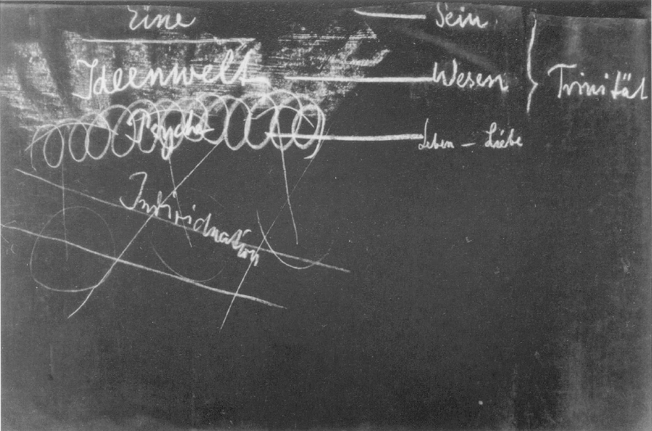 But precisely there is the origin of individuation, there the Psyche, which otherwise takes part in the single idea-world, becomes a part of body A, and body B, and so on, and through this fact there appear, for the first time, individual souls. It is just as if I had a great quantity of liquid in one mass, and having taken twenty glasses had filled each with the liquid, so that I have this liquid, which as such is a unity, thus divided, just so I have the Psyche in the same condition, because it is incorporated in bodies which, however, it has itself created. Thus in the Plotinistic sense a man can view himself according to his exterior, his vessel. But that is at bottom only the way in which the soul reveals itself, in which the soul also becomes individualized. Afterward man has to experience within him his very own soul, which raises itself upward to the idea-world. Still later there comes a higher form of experience. That one should speak of abstract concepts—that has no meaning for a Plotinist; for such abstract concepts—well, a Plotinist would have said: “What do you mean—abstract concepts? Concepts surely cannot be abstract: they cannot hang in the air, they must be suspended from the spirit; they must be the concrete revelations of the spiritual.”