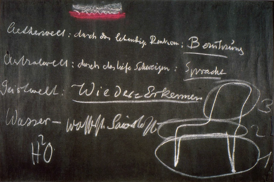 Naturally the level of mentality in our modern civilisation again presents a considerable obstacle, for the much-cited philosopher could have learned already from chemistry that it is not enough to go on talking only about abstract divisions, that one can apply them to a chair but not to water. However, in the case of this so-called philosopher, the philosophy unfortunately did not get past the chair to the water. It did not rise from the observation of life's trivialities to natural science. On the other hand, natural science does not concern itself with philosophy, so that the chemist of to-day does not think about such things at all.