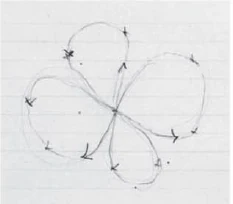 The second drawing showed two superimposed figure eights rotated 90 degrees around each other, which were to be walked by several people at the same time. "But you have to be careful to pass each other easily in the middle. You have to start a little bit after each other so that only two are in the middle at a time.“